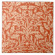 Ceramic tile in an Art Nouveau pattern of flowers, oak branches and leaves, based on a vintage William Morris textile design, digitally enhanced and coloured in pastel orange on a deeper mandarin orange background