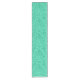 Table runner in an Art Nouveau pattern of flowers, oak branches and leaves, based on a vintage William Morris textile design, digitally enhanced and coloured in soft aqua on a turquoise / peacock background