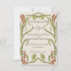 Romantic design with an Art Nouveau floral frame, in the colours of sunset orange with muted greens on the background of vintage paper. Elegant, sophisticated vintage fonts complete the timeless and classy look.