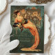 Art Nouveau Floral Goddess Menu Card Teal Peach