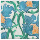 This is a pattern of old vintage Art Nouveau tiles with blue flowers with a yellow centre, green stems and leaves on a white background.