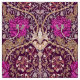 Fabric in a vintage William Morris, Art Nouveau, floral print of honeysuckle vines and carnations, digitally enhanced and coloured, in plum, beige, tan and cream, on a deep aubergine purple background