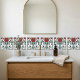 Embrace the elegance of the Art Nouveau era with this stunning ceramic tile design. Featuring a stylized rose at its center, framed by intricate geometric patterns and lush green foliage, this artwork evokes a sense of natural beauty and sophisticated design. The vibrant color palette, with its warm oranges, deep pinks, and rich blues, creates a striking visual appeal that will enhance any space. Perfect for adding a touch of vintage charm and artistic flair to your home decor, this tile is a true statement piece.