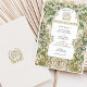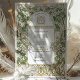 Immerse your guests in the elegance of a bygone era with this exquisite Art Nouveau Floral Wedding Invitation Suite. Inspired by the flowing, organic forms of the Art Nouveau movement, this invitation is a harmonious blend of nature and design. The front of the invitation is adorned with an intricate pattern of lily flowers and sinuous leaves in a palette of soft white, sage green, and subtle gold, set against a cream background. The back features a monogram emblem entwined with a graceful tree of life, encapsulating the unity of two lives entwining. The sage green, gold, and white colour scheme weave through the design, imparting a timeless sophistication to your wedding announcement.