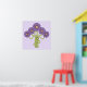 Colours: grayish violet, light apple green, light brilliant vermilion and light orange on a light violetish grey (grey) background.