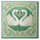 Art Nouveau Green Swan Couple Lake Floral Motifs Tile