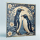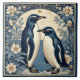 Art Nouveau Ice Birds Penguin Couple Floral Decor Tile