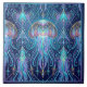 Art Nouveau Jellyfish Cosmic Ocean Pattern Purple Tile