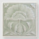 Features an art nouveau jugendstil tile design with crackling/crazing look. Flower is very ornate with curly scroll foliage. Done in colours of grey and green.