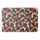 This rug is just as pictured! Vibrant Red and very soft material, nice to step in out of the tub! Matches my set of accessories and shower curtain! A must have to add some whimsy to your bathroom! Very nice, vibrant and clear print! Beautiful!