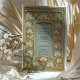 This stunning wedding invitation showcases the timeless beauty of Art Nouveau floral design, featuring graceful, organic lines and intricate botanical details. The front is adorned with a luxurious lily-inspired frame, where delicate blossoms and swirling vines create a sophisticated border around the wedding details. The muted teal, blush, sage green, and antique gold hues add to its vintage charm, making it an ideal choice for classic, romantic, or nature-inspired weddings.