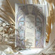 This two-sided wedding invitation features an elegant Art Nouveau frame filled with blooming magnolias, curling vines, and lily-of-the-valley motifs. Stylized whiplash curves sweep around a central ivory panel, creating a romantic architectural border reminiscent of Belle Époque posters and antique stained glass. Soft pastel tones of lilac, blush, blue, and celadon are outlined with fine, golden line work that gives the artwork a refined, heirloom quality.