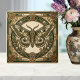 Art Nouveau Moth Green Gold Floral Ceramic Tile