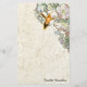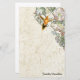 Gorgeous Art Nouveau vintage botanical watercolor fine art of Hollyhock Flowers and Honeysuckle Berries and Vine by Mucha, and a wonderful Hummingbird Bird, over faux handmade paper, is on this Floral Hummingbird Personalised Stationery. Images are public domain due to expired copyright. Collage is by me.