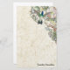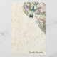 Gorgeous Art Nouveau vintage botanical watercolor fine art of Hollyhock Flowers and Honeysuckle Berries and Vine by Mucha, and a wonderful blue Hummingbird Bird, over faux handmade paper, is on this Floral Hummingbird Personalised Stationery. Images are public domain due to expired copyright. Collage is by me.