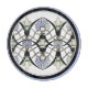 Bridging the transition from Art Nouveau to Art Deco, the original design on this elegant charcuterie board features a tall repeating ornamental pattern of blue-green opalescent Scallop Seashells, Celadon & pale pink Lilies, undulating silvery grey ropes intertwined in "Double Dutch" fashion & black Gothic archways on a Snow White background.