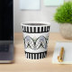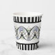 Bridging the transition from Art Nouveau to Art Deco, the original design on these paper cups, features blue-green opalescent Scallop Seashells, Celadon & pale pink Lilies, undulating silvery grey ropes intertwined in "Double Dutch" fashion through black Gothic archways, and black & white vertical stripes along top & bottom.