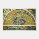 An art nouveau textile art collage by maurice verneuil. It features peacocks, rabbits, rooster and fish and grapevines. A unique elegant vintage design.