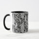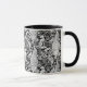 Art nouveau pattern based on a vintage William Morris tapestry inspired fabric depicting a forest scene with peacocks, hares and foxes, digitally rendered in black and white