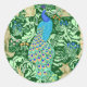 Art Nouveau Peacock Print, Cobalt Blue & Green Classic Round Sticker
