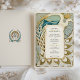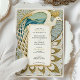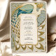 This stunning Art Nouveau wedding invitation showcases an intricate peacock illustration with elegant, flowing feathers in deep blues, soft greens, and warm golds. Inspired by the luxurious aesthetics of the early 20th century, the ornate botanical frame and delicate detailing add a sophisticated, vintage touch. The invitation blends fine decorative elements with refined typography, making it perfect for couples who appreciate timeless elegance. The back features a minimalist emblem with an intertwined floral motif, adding an artistic and personal touch. Ideal for weddings with a vintage, nature-inspired, or Art Nouveau theme.