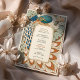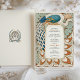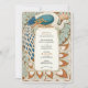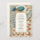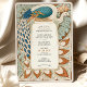 This stunning Art Nouveau wedding invitation showcases an intricate peacock illustration with elegant, flowing feathers in deep blues, soft greens, and warm golds. Inspired by the luxurious aesthetics of the early 20th century, the ornate botanical frame and delicate detailing add a sophisticated, vintage touch. The invitation blends fine decorative elements with refined typography, making it perfect for couples who appreciate timeless elegance. The back features a minimalist emblem with an intertwined floral motif, adding an artistic and personal touch. Ideal for weddings with a vintage, nature-inspired, or Art Nouveau theme.