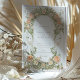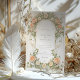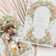 This elegant wedding invitation features a classic Art Nouveau design adorned with beautiful peach ranunculus and lush green foliage. The front of the card showcases intricate floral patterns intertwined with graceful scrollwork in soft pastel shades of peach, green, and cream. The detailed design creates a timeless and romantic atmosphere, perfect for a sophisticated wedding celebration. The back of the invitation continues the floral theme, highlighting the wedding date with an arrangement of ranunculus and leaves. Ideal for couples seeking a blend of traditional elegance and artistic charm, this invitation embodies the essence of romance and nature.