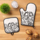 Art nouveau poppy floral black and white elegant oven mitt & pot holder set