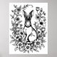 Colouring poster an Art Nouveau-inspired colouring poster featuring a poised rabbit surrounded by elegantly flowing floral motifs. Stylised flowers and leaves frame the rabbit, creating a balanced, decorative composition with intricate, graceful detailing throughout.
