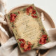 Celebrate romance with this dramatic Art Nouveau wedding design, featuring lush red roses and peonies arranged in an ornate vintage border. The rich tones and antique background create a timeless and elegant atmosphere, perfect for fall or winter weddings, vintage-inspired celebrations, or couples who love bold floral artwork. Easily personalise with your details to create a unique keepsake.