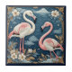 Art Nouveau Romantic Flamingo Couple Floral Motifs Tile