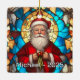 An absolutely stunning Christmas ornament perfect for a cherished spot on your tree! This design captures a warm, detailed portrait of Santa Claus holding a star and holly, beautifully rendered in the vibrant, illuminated style of traditional stained glass. The rich colors and classic imagery make this a timeless piece, ideal for commemorating a special year, gifting, or adding an elegant, classic holiday touch to any Christmas decor collection.