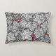 Accent pillow in an Art Nouveau pattern of strawberry plants, with leaves, flowers and berries, based on a vintage William Morris textile design, digitally enhanced and coloured in black and white, with a dark graphite grey /grey background, and an accent of deep red berries