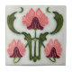Art Nouveau Style Ceramic Tile. Pink/Green Tile