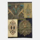 A collage of artistic, art nouveau prints by Christopher dresser. A mixture of arts and craft style , Victorian and art nouveau textile prints. Bold and elegant. In colours of black, gold and green.