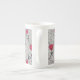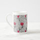 Art Nouveau Tulip Damask, Grey and Red Bone China Mug