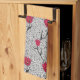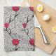 Art Nouveau Tulip Damask, Grey and Red Tea Towel