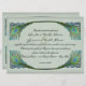This design features an aged looking background in a parchment colour with green overtones with some Art Nouveau peacock feathers as a decorative border. This works for just about any season, formal or informal.