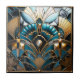 Beautiful art deco tile with a geometric, pattern in black, gold and turquoise.