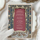 This exquisite Art Nouveau wedding invitation features a stunning combination of deep burgundy, navy blue, and gold floral motifs, evoking timeless elegance. Delicate white blossoms intertwine with graceful vines, set against an ornate gilded frame with intricate detailing. The rich colour palette and vintage aesthetic make this invitation perfect for autumn, winter, or classic-themed weddings. A refined balance of symmetry, floral artistry, and metallic accents adds a luxurious touch, ensuring your wedding stationery is both sophisticated and memorable.