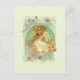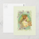 Art Nouveau Young Woman Girl with Stars Flowers Postcard