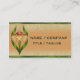 Elegant and stylish business card with a touch of nostalgia: A glass iris flower in art noveau style decorating a tan background with green glass borders top and bottom. For people that love elegance and retro style.
