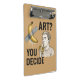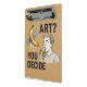 A humourous take on modern art—banana taped, guy eating, bold “ART? YOU DECIDE” provokes thought.