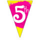Fun bright paint splat arty birthday party buntings. Personalise with your child's birthday year. Currently reads Happy 5th Birthday. Matches other items in the Art party collection. Original art and design by Sarah Trett. www.sarahtrett.com for www.mylittleeden.com