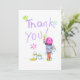 Customise this thank you note! A drawing of a little girl artist painting the word thank you which coordinates with Art Birthday Party invitations and also works on its own -