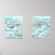 Set of two art prints of sandpipers running in waves. Featuring painterly brushstrokes, light neutral colours, and a modern beach aesthetic.