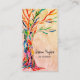 This unique business card is decorated with a mosaic Tree of Life design in rainbow colours on a coral beige background.