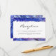Art Wedding Reception Enclosure Card. Customisable charcoal and grey text on white adorned with printed extracts of original fine artwork, Abstract in Blues, painted in oils with brush and knife by living fine artist. Artwork features shades of white, blue, navy, ultramarine, purple, violet, and mauve dancing together - perfect for framing after the wedding and a lovely way to share this gorgeous artwork with your guests. Visit our store, Austen & Grace, to view the full wedding suite and our growing range of designer paper and homewares. Please contact us if you require extra matching products or any assistance via the contact button or email directly at contact@austenandgrace.com