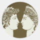 Round sticker with an image of twin deities Artemis and Apollo. See matching confetti, favour tag, label