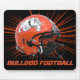 Artesia Bulldogs Football Helmet Mouse Pad featuring the 2025 iconic orange Bulldog helmet over orange Bulldog Football lettering with orange starburst background.